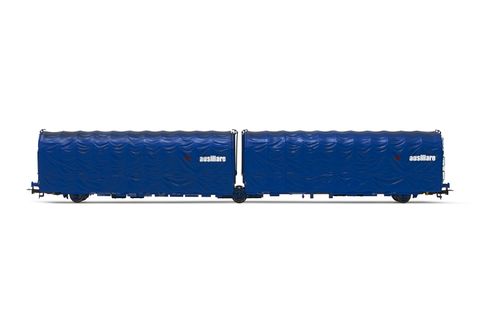 Press, 2-unit set of 4-axle stake wagons, Res type, blue livery, without load, ep. VI.
